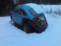 2013-10-03-08.22.19.jpg (147.28 KB. 480x594 - vist 325 ganger.) Disse bildene er tatt i oktober, da vi alle trodde det skulle bli vinter, og bobla ble satt unna for sesongen. Det kom litt snø, så forsvant den igjen, og så har det stort sett vært bare veier og tørt vær siden. Men bobla er og blir innparkert til våren, på ei låvebru, bak en arbeidsledig snøfres og en gammel traktor uten strøm. ...  Det positive er at det stadig er folkevogner å se på veiene her i Trøndelag!