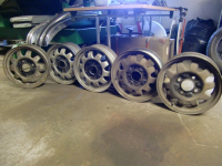 5 Weltmeister felger. De med mest sølvfarge igjen er 4,5" ET41, de med minst er 4,5" ET34. Senterkopper er borte for lengst.