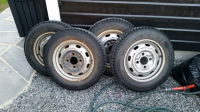 Da jeg skal skifte boltsirkel på boblen min og mest sannsynlig ikke bruke den på vinteren igjen selger jeg mine vinterdekk. Dette er av den gode gamle sorten med stålpigger, så ikke no tull. Jeg brukte dem i vinter og jeg syntes de var helt ok å kjøre med.
