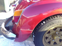 Nytt ratt er montert, og er pent og helt. Det kan følge med 2 originale høyryggede stoler som er slitne i trekket og må trekkes om, hvis kjøper ønsker dette. Framstolene som står i bilen er fra en eller annen Audi, med hodestøtter som ikke er justerbare (de mangler "hakk"). Det er dessverre noe slakke i forstillinga, men alt av balljoints følger med. Bilen er generelt bra for rust, men har noe rust i takrenner og i begge stigtrinn. Forgasseren (original 34 pict) er ikke helt frisk, mistenker ødelagt flottør. Det er en bulk i høyre bakskjerm etter at eieren før forrige eier var og "hilste på" et autovern. Denne kan bankes ut fra innsiden, og lakkeres opp. Ellers er bilen helt grei, ligger godt på veien og er ganske god å kjøre. Og ikke minst er den sprek med tanke på at den er 41 år gammel.