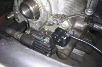 nei det monteres bak reimhjulet sånn ca kl 5, i den ene bolten som holder blokka sammen, skal se om jeg finner et bilde