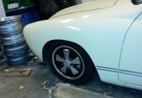 Som bildene viser er ikke bilen min veldig lav (den er godkjent med den høyden som vises på første bilde) men det stopper seg selv i en Ghia pga problemer med subbing. Skulle jeg "tatt den helt ut" ville jeg ha tatt frem vinkelkutteren og løftet hjulbuen noen cm slik at jeg kunne fått mer klaring.
