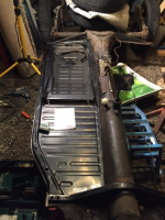 Fikk henta gulvplater hos Danske'n idag. Overaskende bra passform ift målene mine og når jeg sammenligner med de jeg tok ut. Men jekkfestet og den bakre "crossmembere'en" tok jeg av, da den er strøken på bilen. Jekkfestet fordi det er en skikkelig rustfelle, spes på repro platene, da de har en ekstra plate imellom. Dessuten kommer jeg ikke til å bruke de noen gang Glad