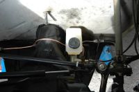 beholder (1504 x 1000).jpg (55.19 KB. 800x532 - vist 443 ganger.) monterte først en bremsevæskebeholder på original plass, men fant etterhvert ut at det ikke ble plass til slangene under styrestaget Så ny beholder til å sette direkte på pumpa ble handlet hos Unneberg. Måtte da også bytte gummiproppene i pumpa til noen med større hull. Har også byttet styresnekke og fått montert på en ny forniklet pitmanarm som passet til snekka
