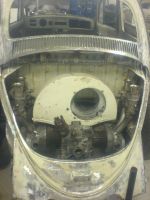 tilbake karosseriet + alt av skjermer osv ferdig sveist, rettet og lakkert.