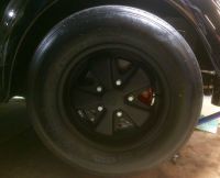 Byttes i 15" felg med 5x130 og 5,5" bredde.