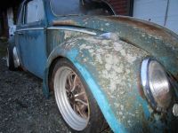 Neida, den har (desverre...) for mye sjarm til det. Går til og med for egen maskin Den skal sveises opp og fikses mekanisk uten å gjøre mer enn høyst nødvendig med det ytre. Som du vet er bilen alvorlig rusten men noe skal man jo ha å finne på  Har samlet bortimot alt som behøves av sveisedeler så den står bare og venter på at andre prosjekter skal bli ferdige og at arbeidslysten skal ta overhånd.