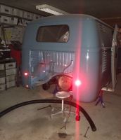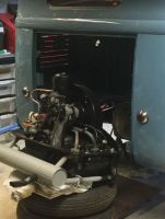 Montering av motor i bil, sikkert 50 år sidan sist det har vert motor i denne..