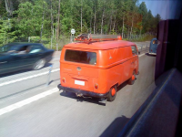Den som fikk meg til å nesten kjøre av veien var en grønn splitt-boble på Kübelchassi som kom putrende motsatt vei!!! Rakk ikke bilder eller noe... Men THUMBS-UP for fet originalbil!