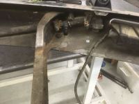 der den går gjennom karrosseriplate under tank .. Selve festet for stanga er disse 4 10 mm boltene , (2 på hver side ) , som