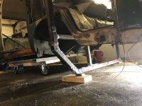 Har begynt å sette sammen krybben. Går litt tid da jeg må frem og tilbake mellom naustet og sveisecontaineren på jobb. Blir veldig hjemmemekk, men pga lav takhøyde må jeg knipe inn der jeg kan... Tror det blir greit, viktigste er at det blir sterkt nok og at jeg får den over på siden.