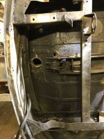Den er veldig bra, men noe småplukk er det. Heldigvis greit å komme til nå når den ligger på siden, før jeg kan begynne sveisingen må jeg bare kvitte meg med noen kilo med understellsmasse først... Ikke så mye spennende å oppdatere om, dagene går med til skraping og sliping.