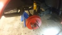 Da er bilen satt på bukker fremme å alle muttere/ bolter er sprayet med rustløser.