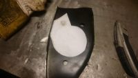 Sveiste inn en m6 skrue ifra innerskjermen. Det er et ordentlig joringspunkt. Det gjore jeg selfølgelig på begge sider av hjulbrønnen da det er orginalt . Det var bare en skrue som er skrudd i stålet. Dårlig joringspunkt et roten til mye kluss på biler i alle aldre.