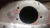 Da er den ferdig sveist å grovslipt på begge sider samt borret opp hullet til riktig dim.