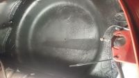 Samt sprøytet reservehjulsbrønnen med slitesterk masse. Brønnen ble selfølgelig slipt så grunnet så lagd på et strøk med karosseri kit der hjulet blir liggende å gnisse før massen ble sprøytet på.