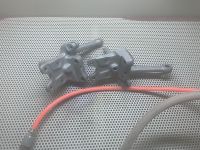 Gjort litt i dag også. Borret å gjenget opp brakett hullene. Kappet bort gamle kalipperfester. Fått grovmålt opp braketten så man kan finne emne for så å få maskinere den. Så blir det å prøvemontert får så å maskinere den en siste gang med tanke på at bremseklossene blir stående helt riktig på skivea /høyden av skive.