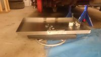 Neste på tapetet før bilen skal ned på hjulene er dette karret som skal hindre oljesøl på gårdsplassen.