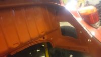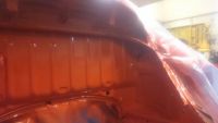 Så blir det å slipe/ matte ned motorrommet utenom rundt rammene da det ble gjort i stad, før grunning og lakkering av motorrommet.  bakskjerm spissene får en runde med steinsprut beskyttelse før lakk.