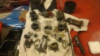 Selger et sett med demonterte solex Kadron gassere.