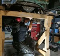 Vi er ikke arbeidsledig med det første,så her er det bare å stå på.Ting som har blitt gjort i det siste:fjernet all gammel lakk på karroseriet, sandblåst og slipet front og bakplate og hyllene i motorrommet og hatt på syregrunning. Noen bilder: