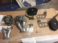 Har 1 sett baby weber på hyllen, med innsug, filter, stag, nyt pakningssett osv.