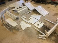 Har starta arbeidet med B stolpen på høyere side. I si tid har nok den blitt vridd/reven/dratt av. Innfestningen i taket ber tydelige merker av dette. Når B stolpen er på plass kan det møysommelige arbeidet med å få døråpningene til å passe igjen.... B-stoplene som eg har + litt Gerson deler