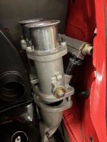 Kom da i kontakt med Bård Huseby og han har hatt bilen ett par uker. Hentet på søndag og diagnosen var feil dyser på forgasser og helt feil tenning. Var dette som gjør at motor blir varm. Bilen er nu testet og kjørt og holder seg under 100 grader på motorvei. Har også hatt bilen i dyno og har papirer på 79,5 HK. Den kjører bra, men for lav kompresjon for å gi 100 hk. Og er jo langt unna de 140-150 som var planen