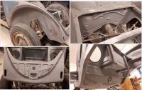 Grunnen til at bilen var satt inn på låven var nok en større kollisjonsskade i høyre side bak. Noen har tidligere påbegynt reparasjon, men har tydeligvis avbrutt den jobben.