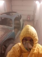 I dag ble det sandblåsing igjen. Fikk blåst en god del på fremre del av karosseriet.