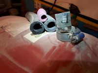 Gikk som vanlig hardt ut over sandblåseren. Slangen blir spist opp innvendig av den skarpe sanden. Kommer plutselig litt luft ut på feil sted, og så må slangen kortes inn litt.