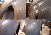 Ser ut som "Plan C" skal fungere. Denne bakplaten var nesten bulkfri og kun litt rust i hver side. Laget derfor et par nye ender med riktig bue til den.
