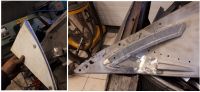 0.jpg (53.17 KB. 800x392 - vist 487 ganger.) Han måtte også lage en bøyle for å få bedre feste i skjermfestene. Her har tidligere eiere trukket vel mye i bolthullene, så derfor måtte belastningen spredes på flere hull. Greit med reservedeler som har riktig fasong.