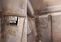 For å komme til hullene fant jeg som eneste mulighet å kappe hull fra innsiden som sveises igjen når rusten er fikset.