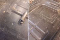 Borret ut klinkene og sveiste inn nytt stål, siden det hadde sprekt rundt klinkene og hullene var blitt alt for store.