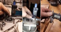I dag ble det måling og finregning, siden Std kassen har en annen oppbygning enn DeLuxe. På denne stikker begge lager på utsiden av anleggsflaten. Presset på lagrene skal være mellom 0,02 og 0,11mm. Siden det minste lageret stikker ut 0,35mm, burde det være passelig med pakning på 0,27mm. Da blir det 0,08mm press på lageret.