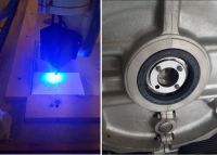 På denne motoren satt ting litt mer fast, så induksjonsvarmeren trådde hjelpende til på eksosmutterene. Lokket på oljesilen var fylt opp med gjørme, så jeg er ikke overbevist om at olja var bedre før  Osteaktig