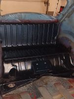 Når stålbørsten først var i gang, tok han en runde inni bilen også, og under/bak baksetet var det litt overflaterust, så her ble det slip ned, lagt på syregrunning, karosserikitt i de skjøtene som var berørt av rustsveisingen, og så la han et lag med matt sort oppå. Dette ble gjort før vi besluttet å lakkere hele karosseriet, så det kan hende vi spanderer en dusj med blått på dette også, men ikke noe av dette blir synlig, så det kan hende det er er andre ting som prioriteres. Nå er det i alle fall rent og pent og ikke noe rust: