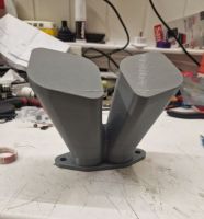 Atle er litt bitt av EFI-basillen, og har så smått begynt å planlegge ett av vinterens prosjekter, og det er å konvertere til EFI. Han er jo skoleelev, så litt trangt budsjett, men faren hans har heldigvis diverse EFI-stæsj liggende, så planen er å bruke et par MC-spjellhus som lå på loftet, og da begynte han med å 3d-modellere et par innsug. Disse spjellhusa har mindre senteravstand enn IDF, så det finnes ikke lett tilgjengelig. Siden han også er en rev på 3d-modellering og 3d-printing, så er planen å designe og lage innsuga selv. Her er første test-print. Hensikten med disse er å finne en fasong som gir klaring mot både det trange motorrommet og viftehus, derfor er det litt forenklet, men det vil bli mer raffinert etter hvert