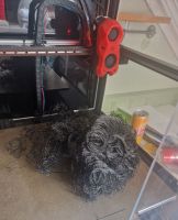Det dreier seg selvsagt om en 3d-printer, og vi har en printer som har byggevolum på 350x350x350 mm og den har fungert bra i lang tid, men vi begynte å få problemer med at ledningene som går inne i kabelgater begynte å få brudd, så da tenkte vi det var lurt å bygge om til CAN-buss styring av det som foregår på verktøyhodet, og det var ikke bare-bare.... Men etter noen uker med banning over linux og annen sort magi, fikk Atle dette i gang, og vi kunne begynne å sette opp printeren til å printe i det aktuelle materialet. Planen var å printe innsuga i karbonforsterket nylon, og det er et ganske kilent materiale å få til. Både fordi det ikke sitter så godt fast i byggepplata, og fordi det har en tendens til å "warpe" når det kjøles ned.