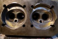 Satt i gjengeinnsatser til pluggene, bora ut styringer og så å si ferdig porta kanaler og forbrenningsrom.