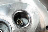 Det nye scat svinghjulet hadde kast og for rom trykkplatehull, så her måtte styrepinner til trykkplatehull og retting av svinghjul. Men nå er det hvertfall bakansert