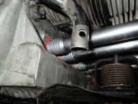 Motoren til Dyret har fått på trakter, gasserstag, og stålomspunnede slanger til oljefilter.