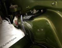 Jobber litt med bensin oppsettet på torpedoveggen. Så blir det bulkhead igjennom veggen. Blir rør ifra blå/ rød fitting og opp i luftfilterhuset.