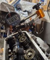 Jeg har bytta kam og vipper, så jeg måtte sette opp geometrien på nytt, så da begynte jeg med å bruke en justerbar støtstang, og måle total løft på ventilen: