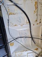 20240415_165235.jpg.jpg (120.86 KB. 800x600 - vist 619 ganger.) Så nedi bunnen av reservehjulsbrønnen er det en jobb å gjøre. Det er et lite hull, men jeg mistenker at stålet er så tynt at det må byttes ut en del. Er det noen som vet om '67 er "one-year only" også på denne delen, eller er det maken som enten de eldre eller nyere? Mens jeg holdt på så kommer det frem noen artige detaljer. Dette kan se ut som er merking fra produksjonen. JEg var forsiktig med vaskinga for å ikke fjerne det, da det kan virke som det er skrevet med en fettstift el.l: