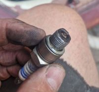 Som nevnt går den ikke helt rent om dagen, så jeg tenkte jeg skulle bytte pluggene, og den ene pluggen var helt sotet igjen:
