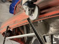 Da er det sveiset inni. Ikke akkurat fagprøve dette men det sitter i allefall. Skal slipes før jeg vipper bilen litt og sveiser ferdig under før jeg begynner på passasjersiden. Gikk tom for sveisearbeid underveis men fikk kjøpt ny 5kg rull med 0,8mm på sveiseverksted lokalt. Ikke skiftet før siden jeg kjøpte apparatet for ca 15 år siden.