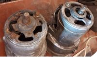Fant frem noen dynamoer i dag. Et par av de hadde noen merkelige feil. Den ene har lageret nærmest vifta skjært seg, og begynt å rotere i lagerhuset. Må ha lagd en del ulyder, for her har det slitt hull i metallet.