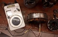 Så er det til med måleapparater for å kontrollere hver enkelt komponent. Her måler jeg ohm fra senter/sammenkoblingen av alle tre viklingene, til hver ende. Verdien skal være lik på alle tre viklinger. Her er det 0,21ohm.